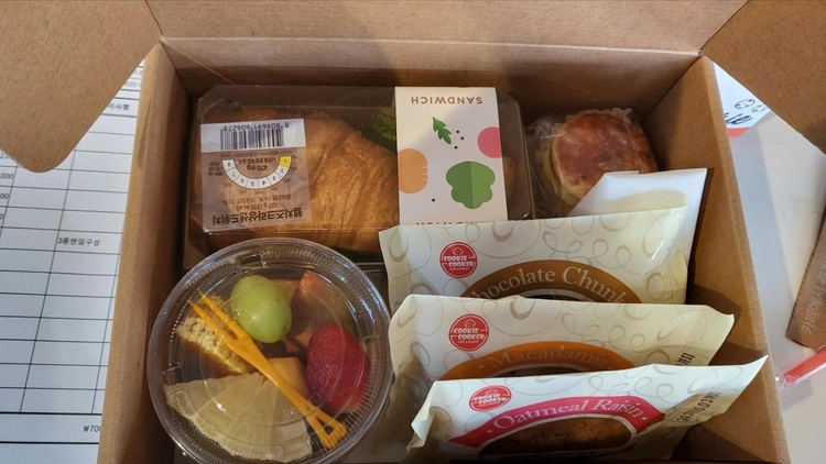 간식박스(캔시머 음료 + 샌드위치 + 컵과일 + 쿠키슈) 22,800원