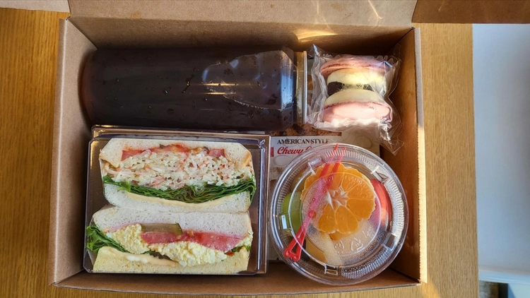 간식박스(샌드위치 + 캔시머 음료 + 컵과일 + 마카롱) 21,800원