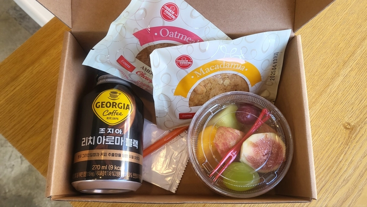 간식박스(컵과일 + 캔커피 + 쿠키2종) 13,000원